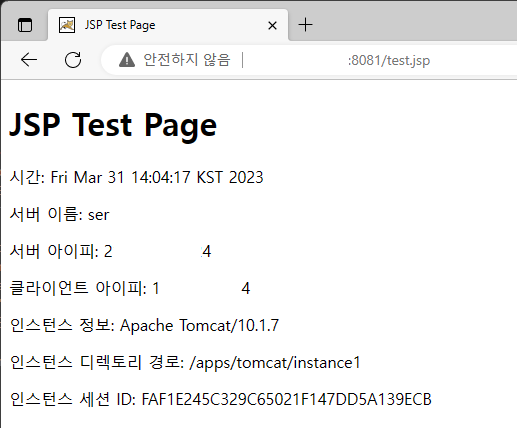 <p>인스턴스 세션 ID: <%= session.getId() %></p>